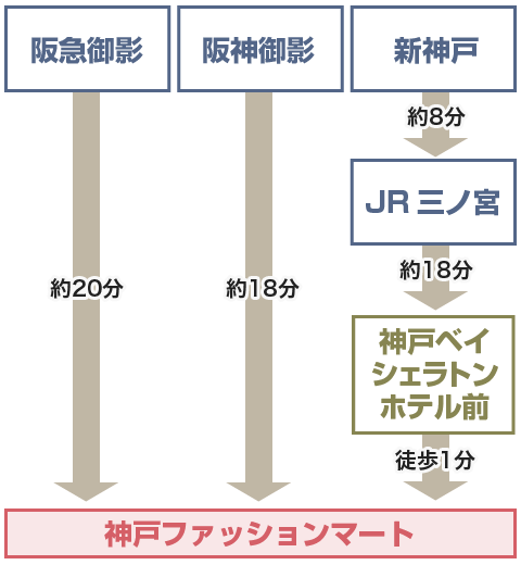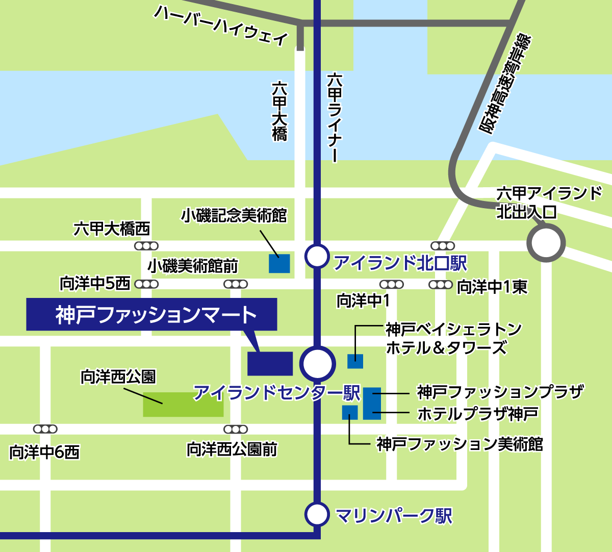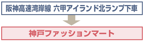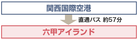 - 新神戸駅南側:(1F) → 六甲アイランド直通バス(約26分)