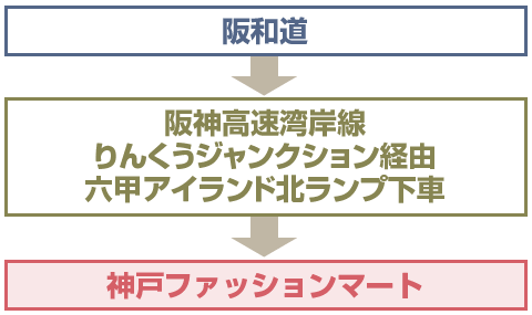 阪和道 → 阪神高速湾岸線りんくうジャンクション経由 六甲アイランド北ランプ下車
