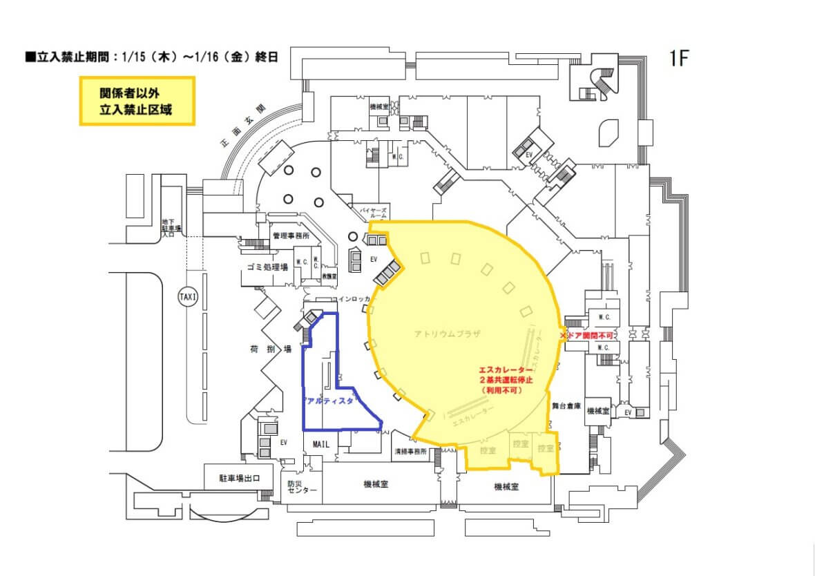 1階アトリウムをイベント関係者以外立ち入り禁止とさせていただきます。