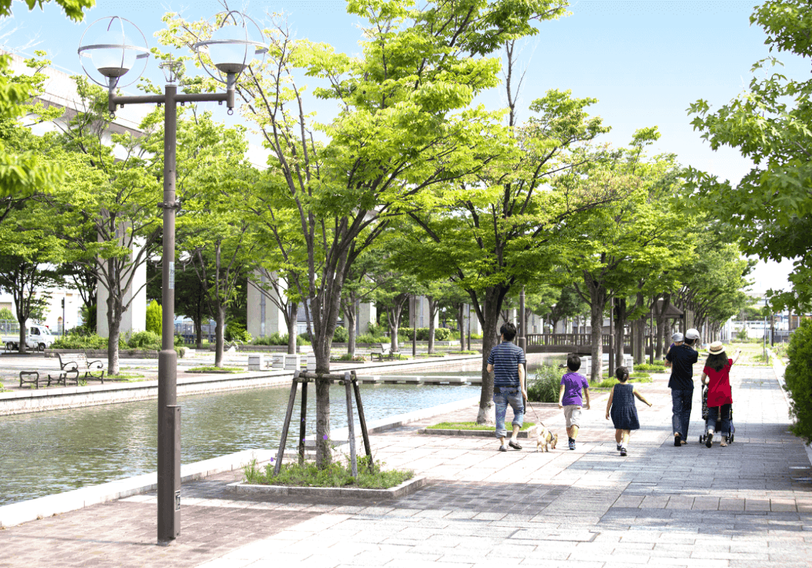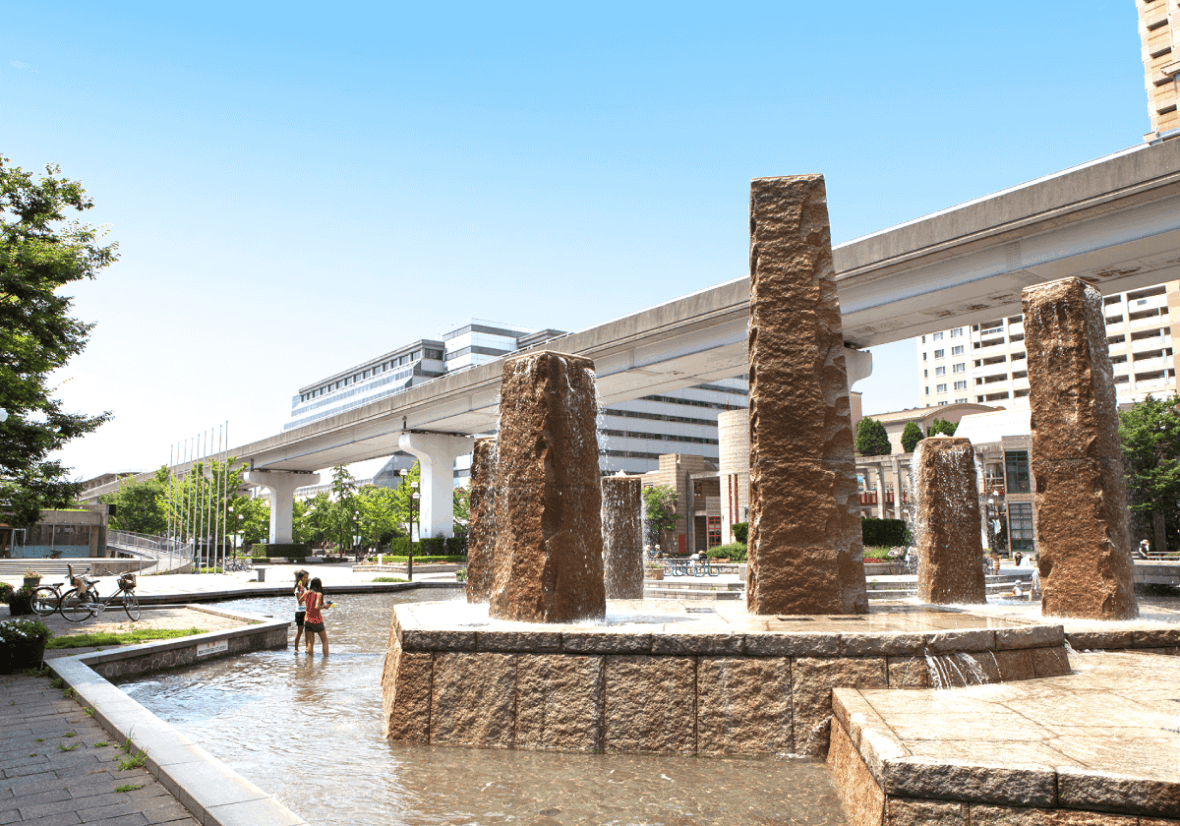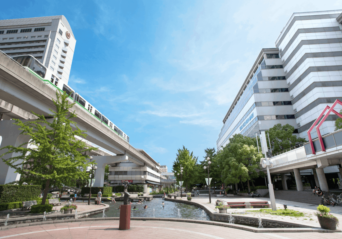 Kobe Rokko Island is a sophisticated town with many modern buildings and facilities surrounded by mountains and the sea. Kobe fashion Mart is located in the center of the town surrounded by a public space with benches, a park and an artificial river. Moreover, there are hospitals, commercial facilities, hotels and restaurants, etc.